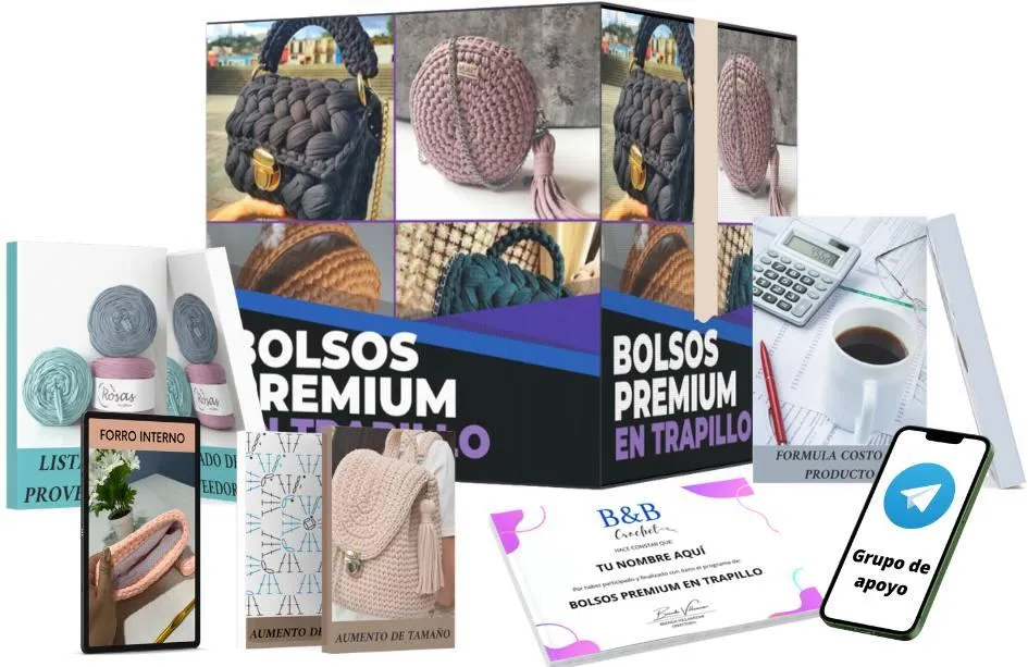 ✅Conocerás los materiales, tipos de trapillo, agujas y herramientas más usadas para la creación de cualquier bolso.