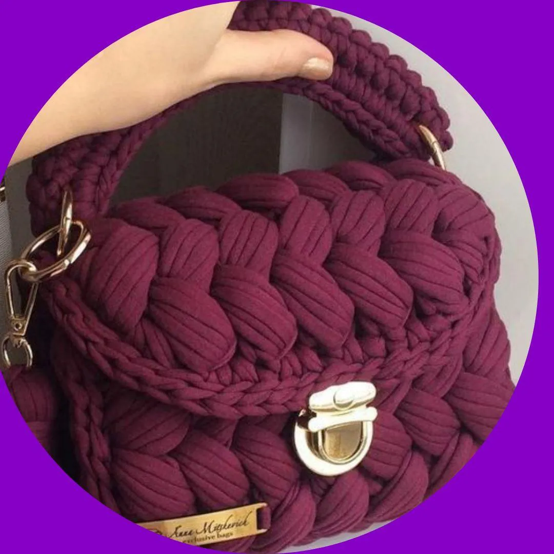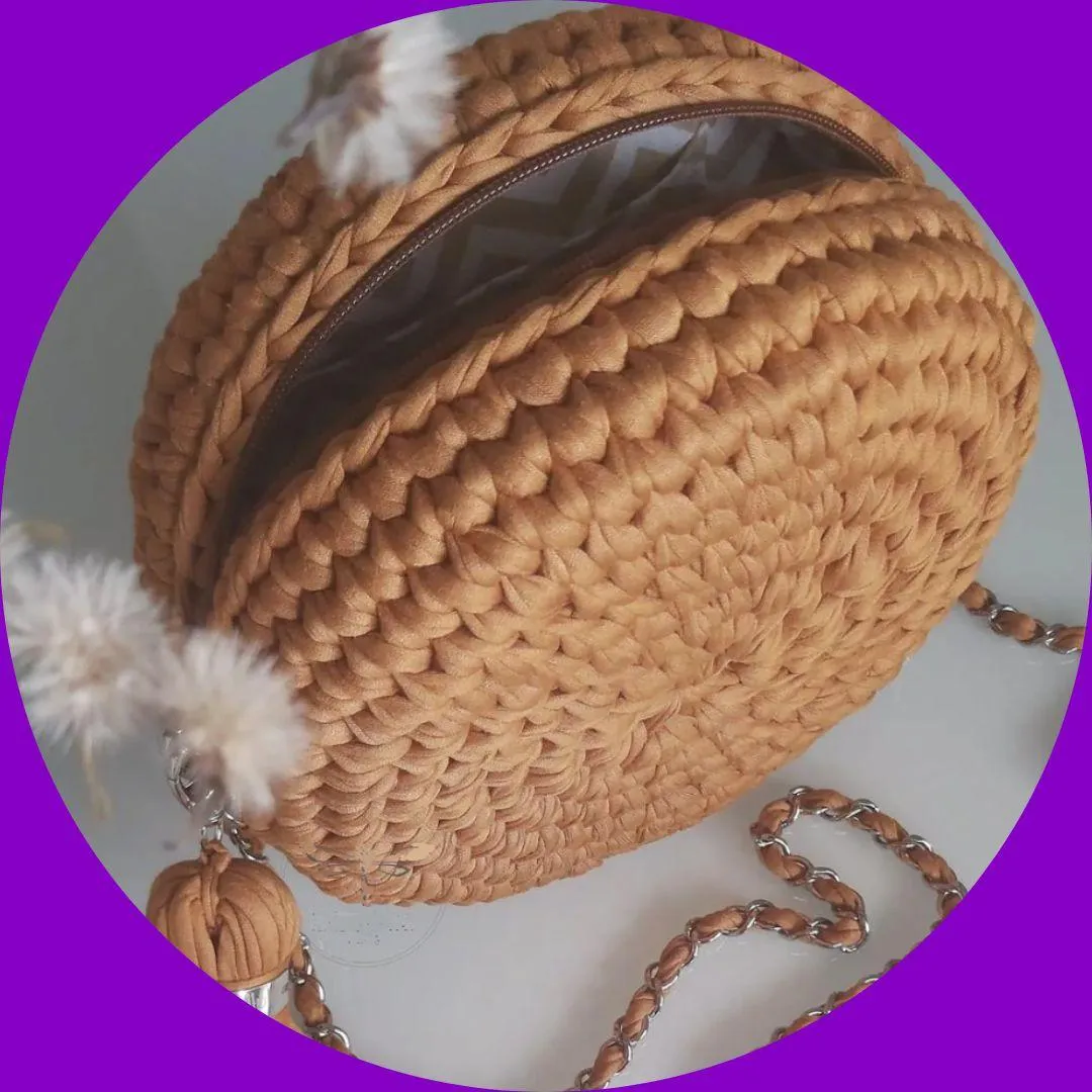 Bolso redondo tejido en Punto Bajo Centrado.
