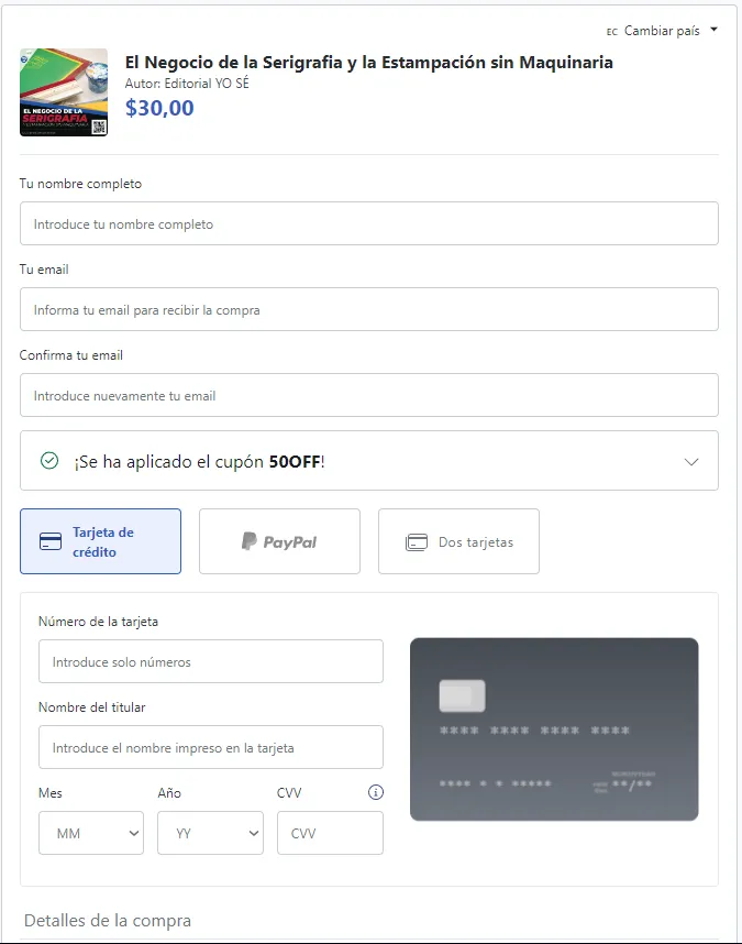 Sí, puedes pagar en efectivo. Al hacer clic en «comprar,» tendrás la opción de seleccionar el método de pago en efectivo. Este método está disponible solo para los siguientes países: