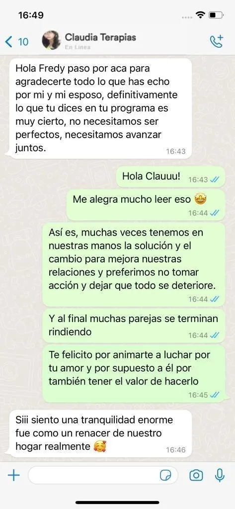 "¡Salvaste nuestro matrimonio Fredy! Recuerdo lo frustrada que estaba y a punto de tirar la toalla después de 5 años de casados