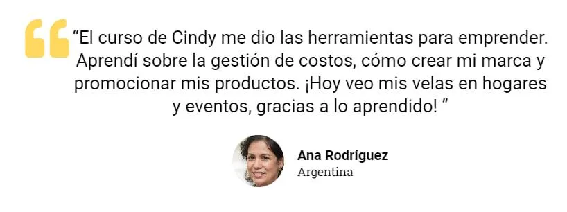 Lograras no solo aprender a crear velas únicas, sino también a construir tu marca, gestionar redes sociales efectivamente y convertirte en la emprendedora exitosa que siempre has querido ser.
